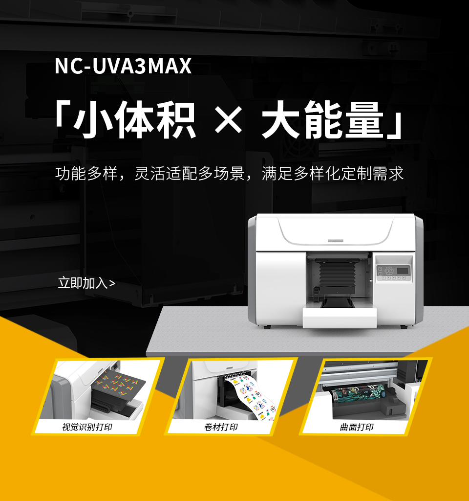 采用3個精度高、使用壽命長的打印頭,4色+白+光油,色彩艷麗,浮雕感強。